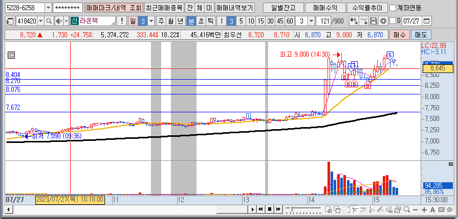 단기 매매를 하고 있으므로 눌릴 때 사서 당일 매도 하는 방법을 취하고 있습니다.