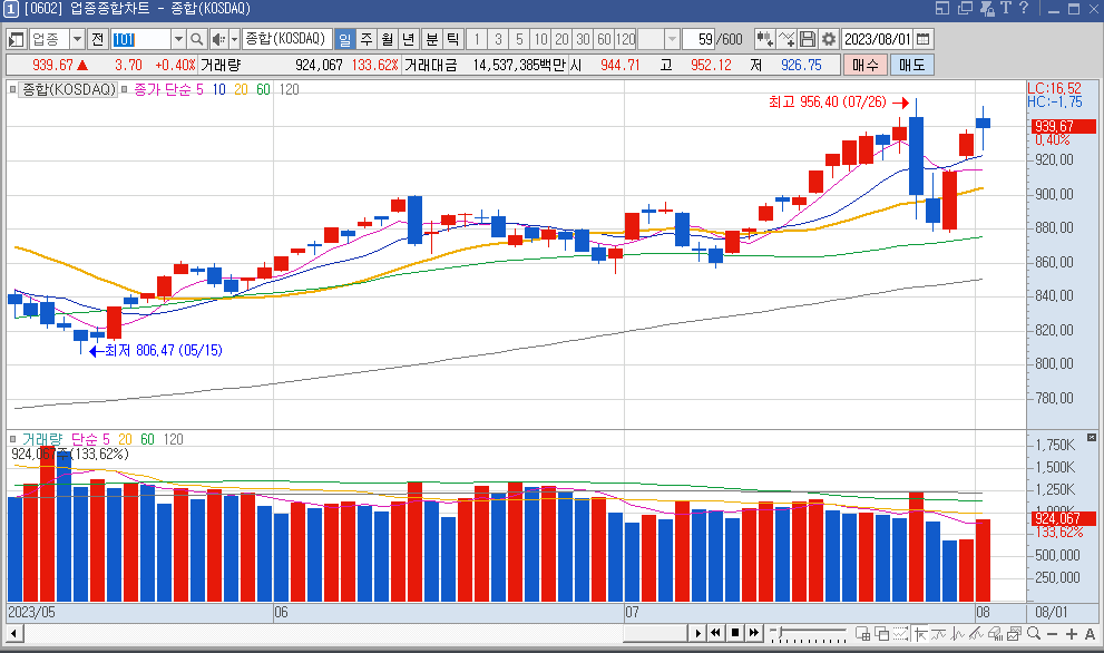 코스닥 시장은 상승 모멘텀을 이어 주긴 하였으나 코스피와 다르게 전고점을 뚫어 주진 못했습니다.