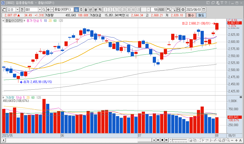 이때 당황 하지 말고 주가의 위치를 보며 대응을 하면 되고, 갑작스런 급락에 대비하여 현금을 항상 보유 하는 것이 좋습니다.