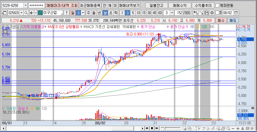 오늘은 이구산업 이라는 종목을 매매 하였습니다.